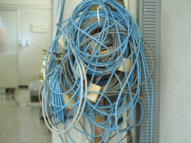 デスクまわりの電源ケーブルやLANケーブル、電話のモジュラーケーブルなど、床での乱雑な配線となってはいませんか?特に電源タップや延長コードを一番ホコリが溜まりやすい床へ放置することは大きな火災につながる原因ともなりとても危険です。また特にオフィスでは机まわりでたくさんの電源を必要とし、どうしてもたこ足配線になりがちです。この際きれいに整線して、万一の不安を取り除くことを強くお勧めいたします。